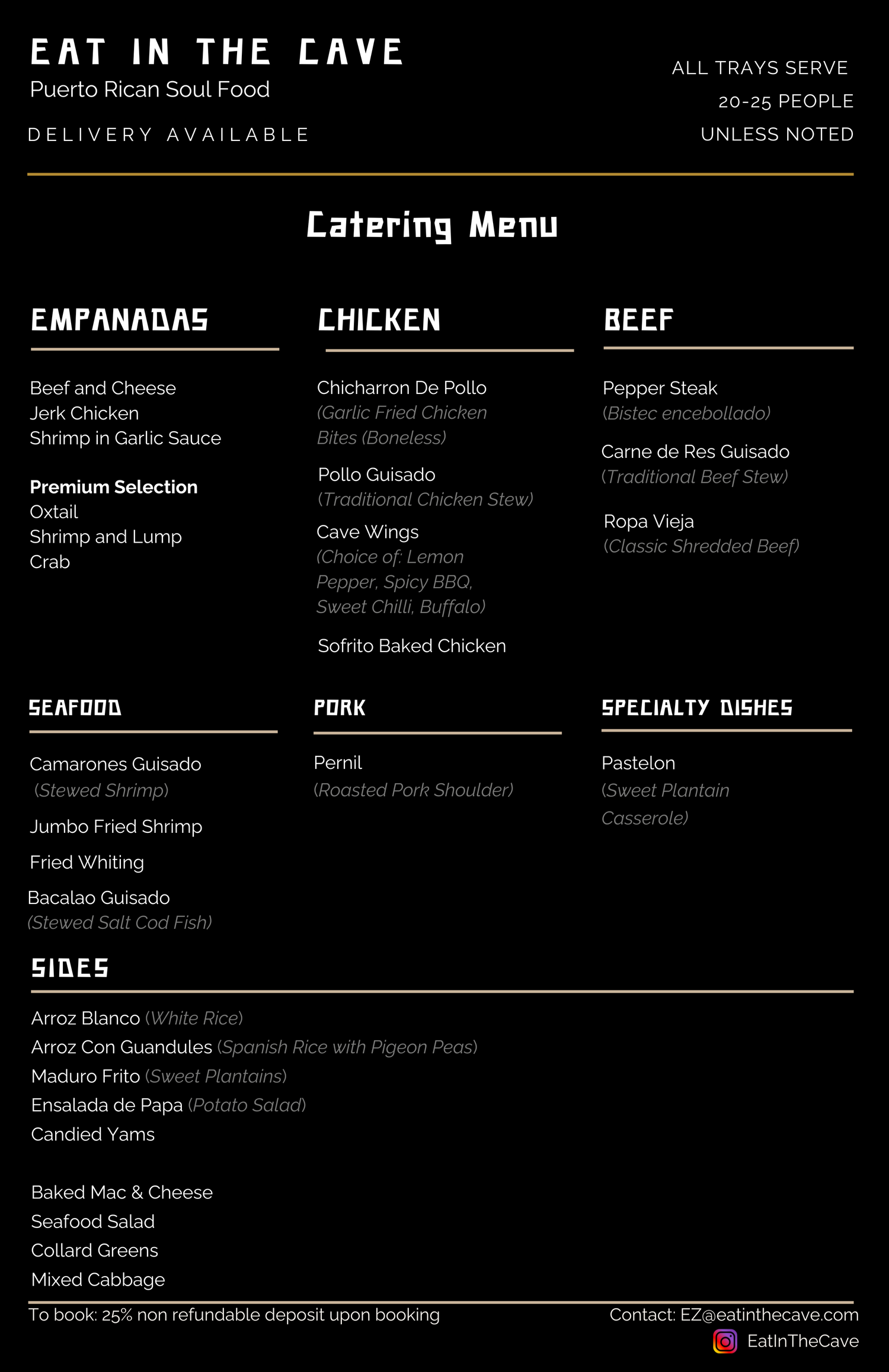 Elevate your next event with our catering service. Perfect for gatherings of any size, we offer a variety of freshly prepared Puerto Rican Soul Food dishes that are sure to impress.